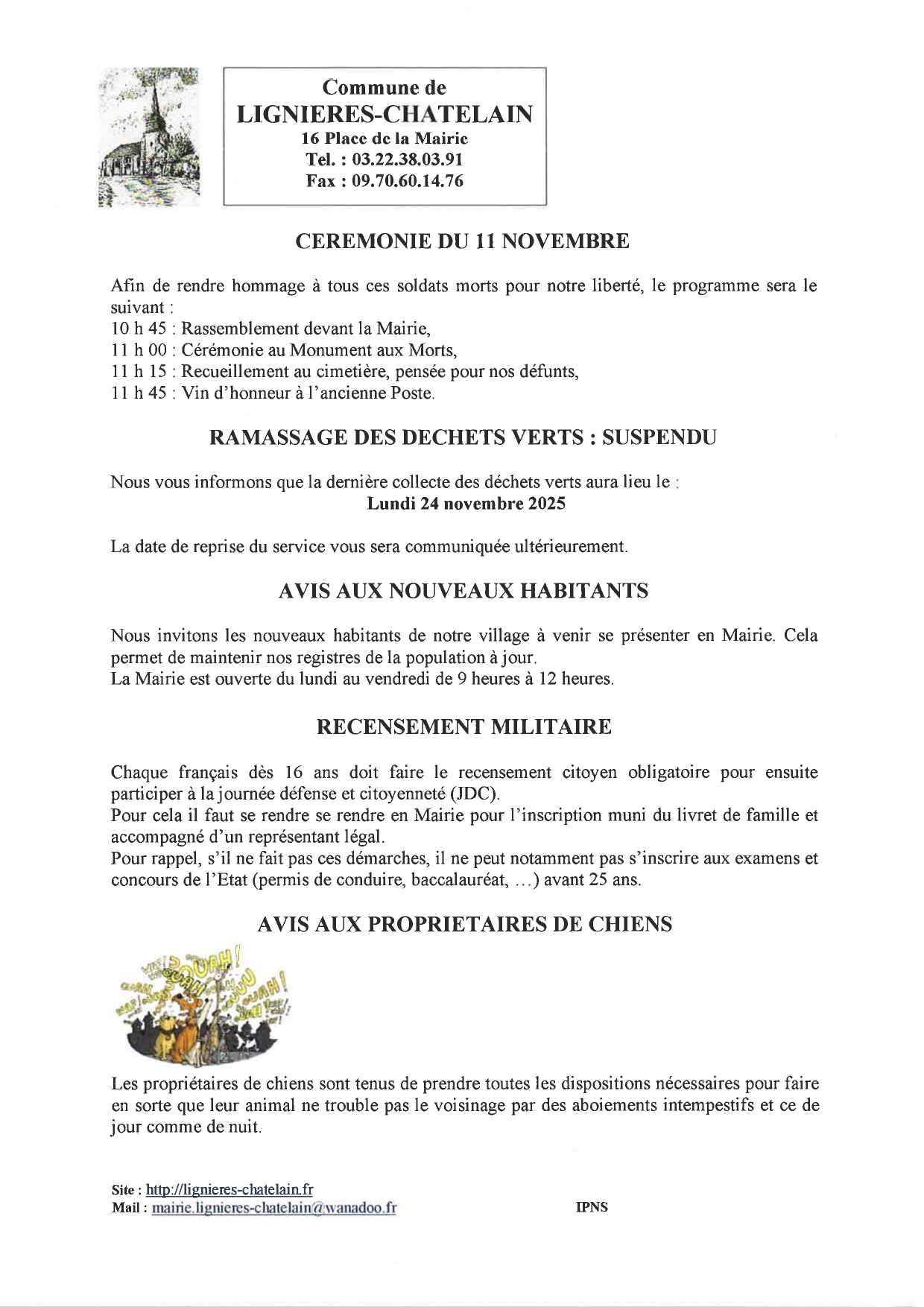 Mail : mairie.lignieres-chatelain@wanadoo.fr